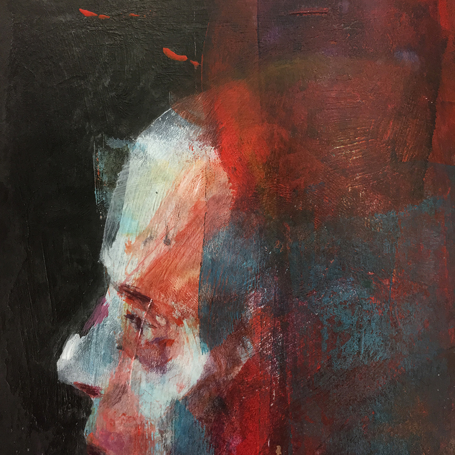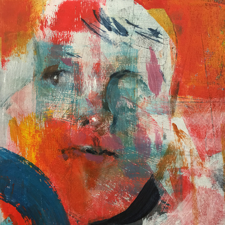 Random imaginary portraits. Acrylics, brushes, and brayers on board, 2020.